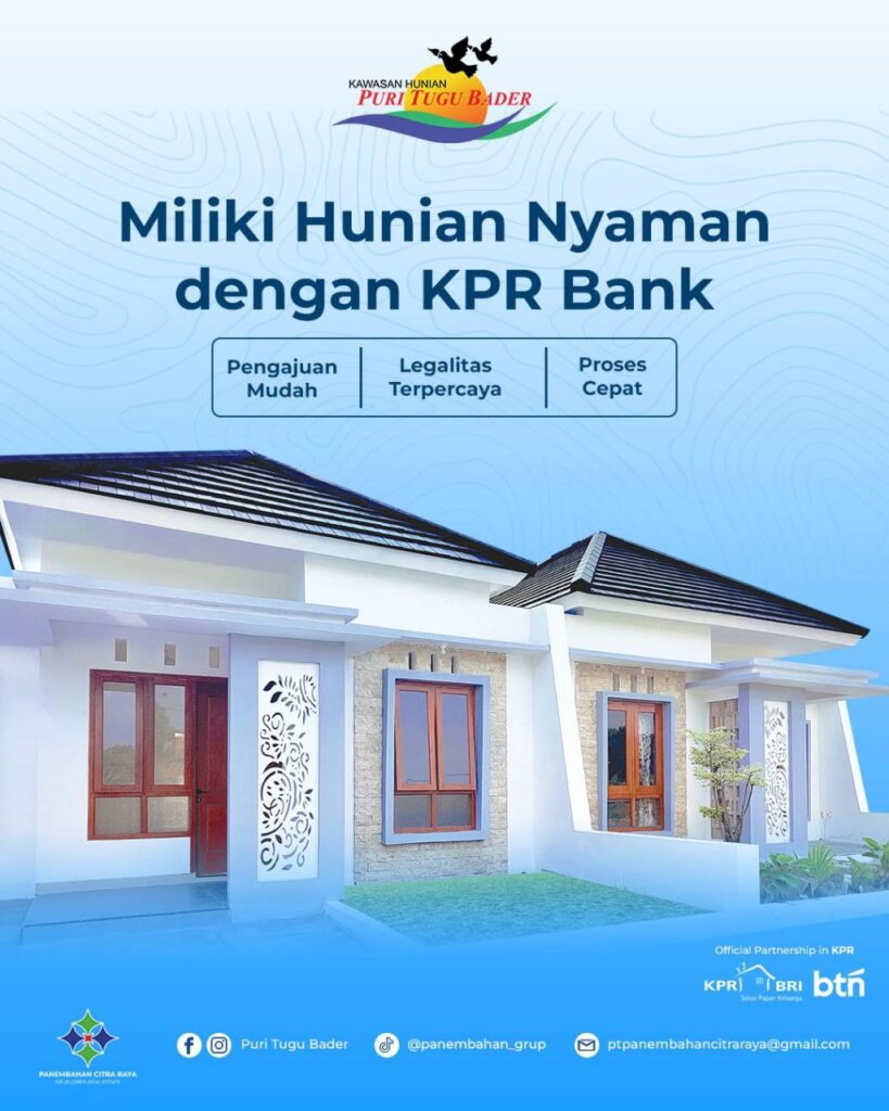 Temukan hunian impian Anda di PURI TUGU BADER! Dengan fasilitas lengkap dan lingkungan yang nyaman, rumah baru Anda menanti. Segera miliki dan nikmati kenyamanan tinggal di tempat yang tepat!”